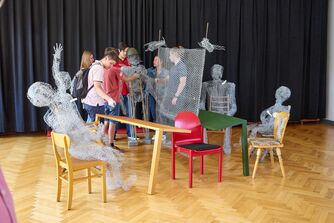 Anhand von Exkursionen und vertiefenden Workshops erarbeiten die Schülerinnen und Schüler Inhalte aus den Bereichen Politik, Geschichte und Ethik. Im anschließenden praktischen Teil erlernten die Teilnehmenden Methoden der künstlerischen Auseinandersetzung mit einem Thema. Auf der Basis neuer persönlicher Erkenntnisse haben sie anschließend in Teamarbeit ein Kunstobjekt geschaffen. Es entstand eine lebensgroße Installation aus Maschendraht, die das Leid, das die deutsche Teilung über die Menschen in beiden Teilen Deutschlands brachte, verdeutlicht. Die Helmstedter Künstlerin Julia Wally Wagner begleitete und unterstützte die Entwicklung und Umsetzung des Kunstobjekts.
